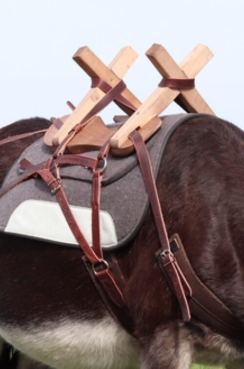 Ce bât est équipé d’un avaloire positionné plus bas, ce qui améliore son ajustement sur l’âne et réduit les mouvements indésirables. Il est fabriqué en cuir chromé de 2,5 cm.