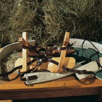 Larçon de ce bât est en sapin du nord pour les patins et en frêne pour les croisillons. Les courroies sont en cuir chromé de 2.5 cm de large rivetées sur un gros anneau central. Elles permettent un bon réglage sur tous les points (avant, arrière et sous ventrière). Les sangles sont en polyester coton doublé de feutre lainé très agréable pour lanimal et toutes les boucles sont protégées par la sangle donc pas en contact avec lanimal ( voir réfs 919, 920 et 921 ). Les croisillons étant inclinés vous pourrez asseoir un petit enfant entre sans difficulté, vous pourrez aussi y mettre des sacoches pour la randonnée. Il est recommandé pour des ânes de 0.80 cm au garrot à 1.05 m, patins courts de 40 cm de long.