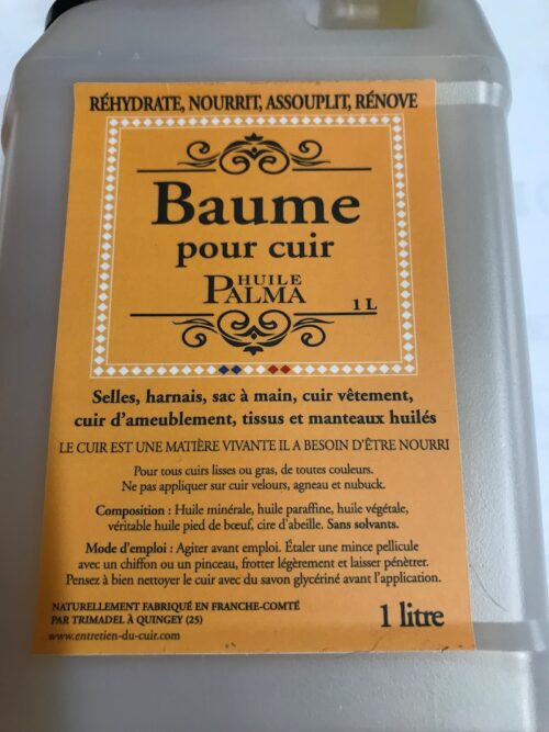 Huile idéale pour nourrir et assouplir vos cuirs. Convient très bien pour les cuirs secs. Fabrication française. Bidon de 1/2 litre ou de 1 litre.
