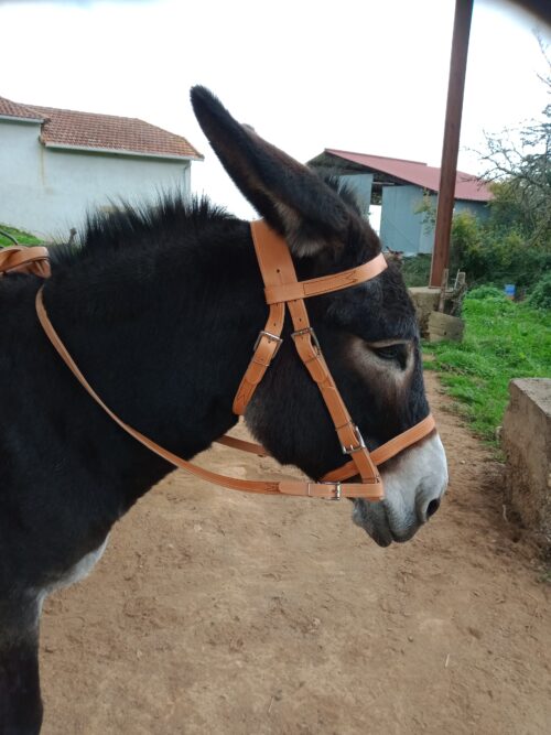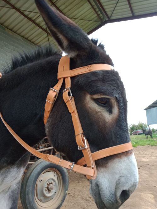 Façon artisanale dans notre atelier en Ardèche, cuir végétal cousu et bouclerie inox . Réglable, livré à vos mesures. Permet le montage de mors deux anneaux ou mors coup de poing. Convient bien pour la promenade et l’attelage.