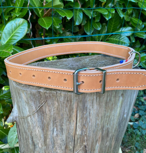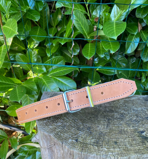 Collier en cuir chromé double épaisseur, robuste et résistant, idéal pour fixer les sonnailles.