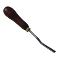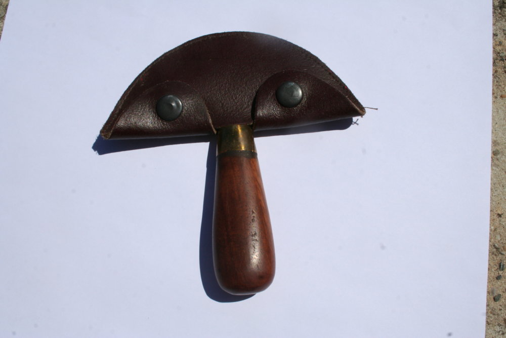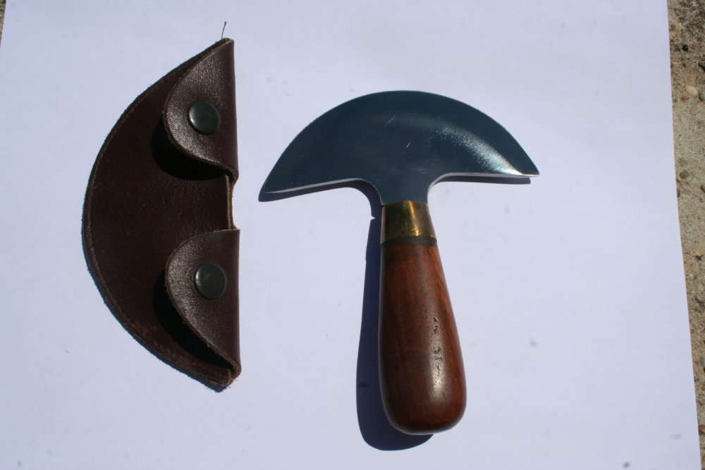 Couteau qui sert à découper et à affiner le cuir. Manche bois vernis, longueur de la lame 115 mm, livré avec étui cuir à pression. Belle qualité, importation.