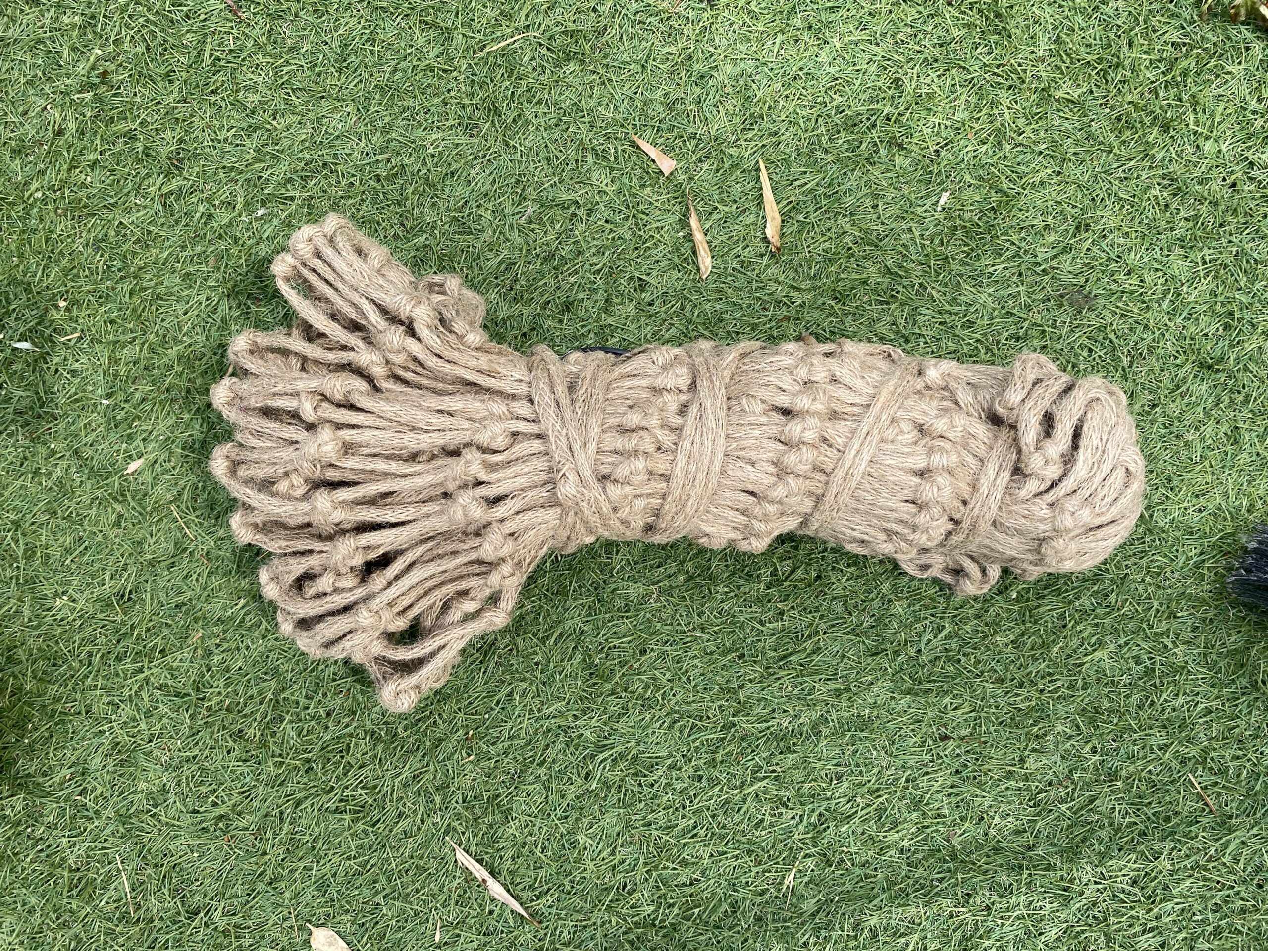 Filet à foin 100% naturel, Eco-responsable : une corde de qualité 100% jute , pour une consommation controlée : maille de 5X5 pour une réduction du gaspillage