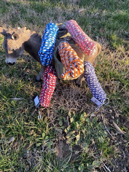 En polyester tricolore tressé souple, avec mousqueton tournant en zinc longueur 2,5 mètres