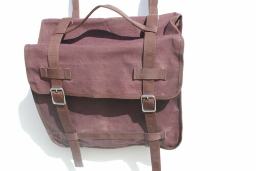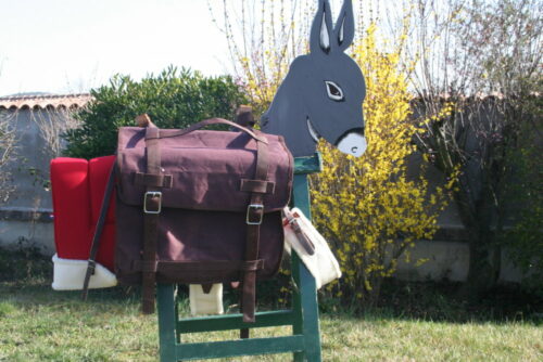 Sacoche en toile épaisse, sanglage en nylon de 4 cm qui entoure la sacoche, fermeture du dessus par zip pour une garantie de ne rien perdre ! Fixation nylon par boucle sur les croisillons du bât.