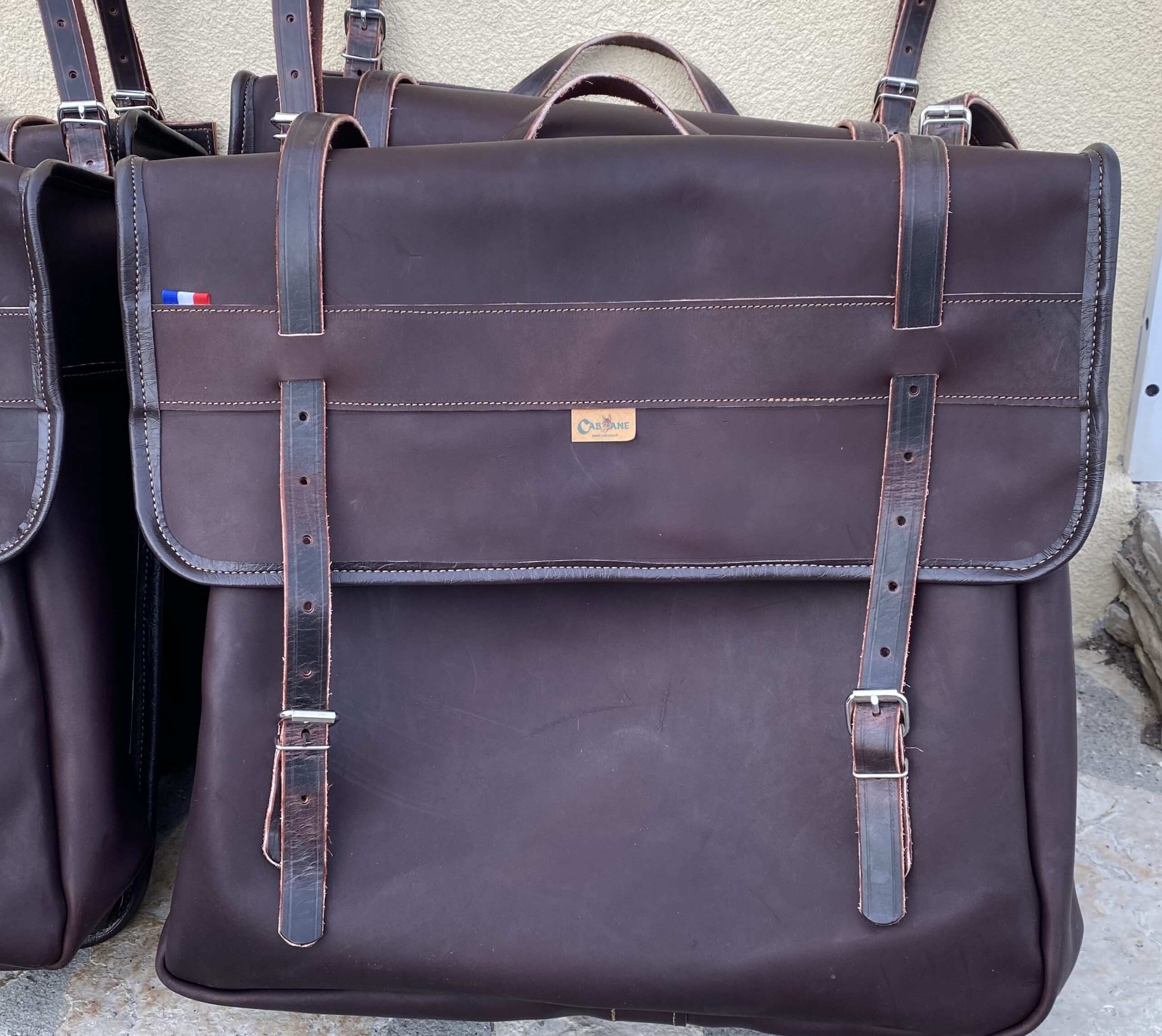 Fabrication artisanale soignée dans notre atelier en Ardèche, elles sont conçues pour transporter tout l’équipement du randonneur pour des trajets aux longs ou cours car très résistantes, elles s’adaptent aux arçons du bât à croisillons par courroies réglables. Fond en cuir plus rigide, rabat sur couvercle pour une meilleure étanchéité, 2 courroies pour fermer les couvercles et une poignée pour le transport , cuir vachette.
