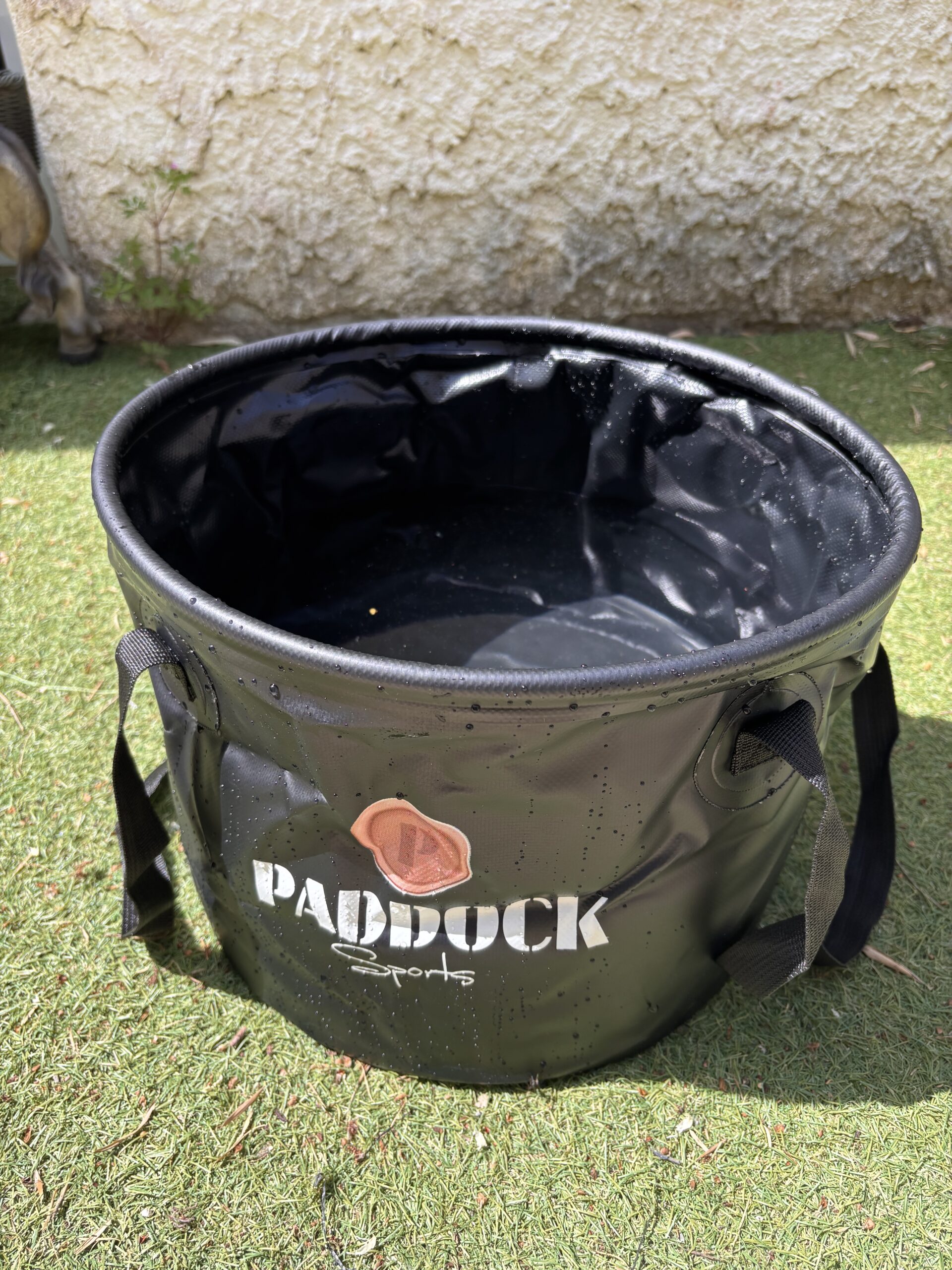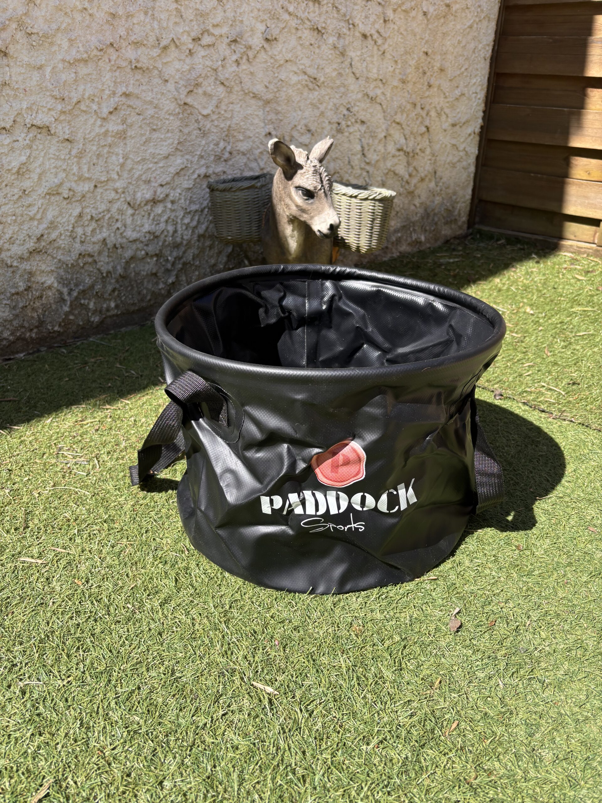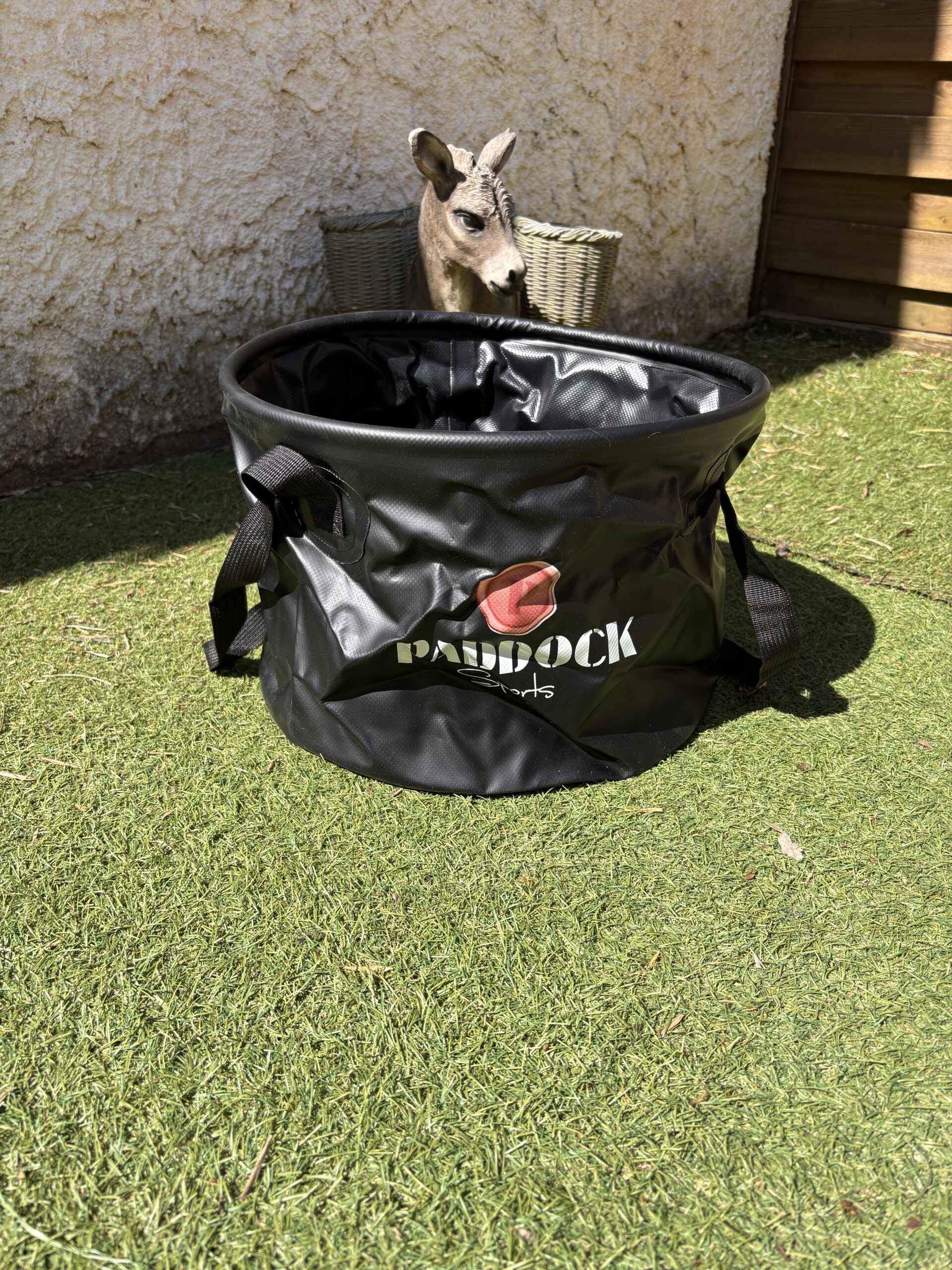 – Le seau pliant Paddock est très pratique et multifonction. Il peut servir de seau de pansage ou permettre de transporter des produits de soin, des bandes ou autres. Il peut également se transformer en mangeoire lors de déplacement en dehors de l’écurie. Enfin, complètement hermétique, il peut servir de seau d’eau portable. Il est léger, facile à ranger car souple et pliable facilement. Il a deux anses en nylon pour faciliter les déplacements.