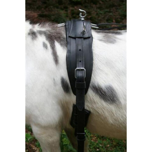 Elle est complète avec la sous ventrière doublée, la dossière doublée, les portes brancards, le tout à vos mesures. Boucleries zinguées, cuir végétal, rembourrage tissus.