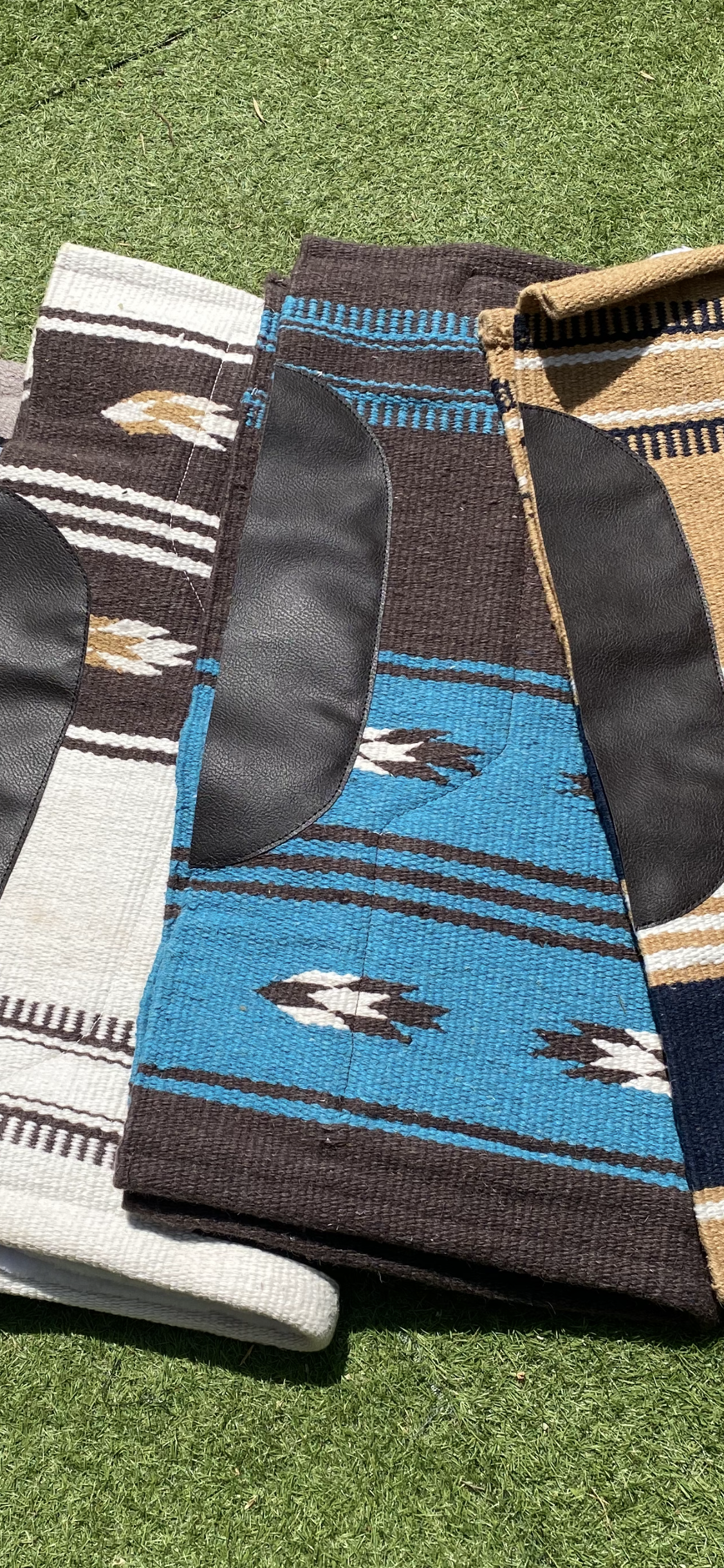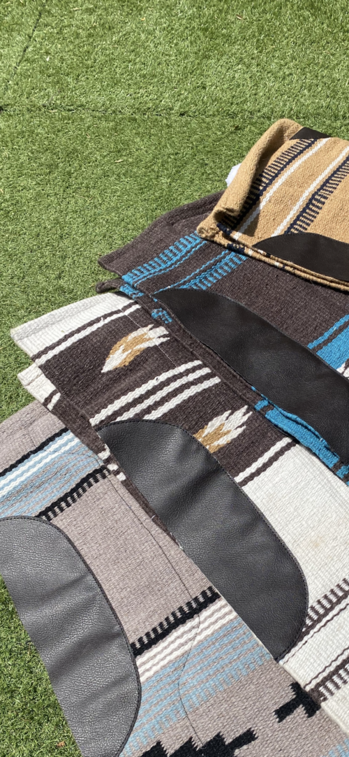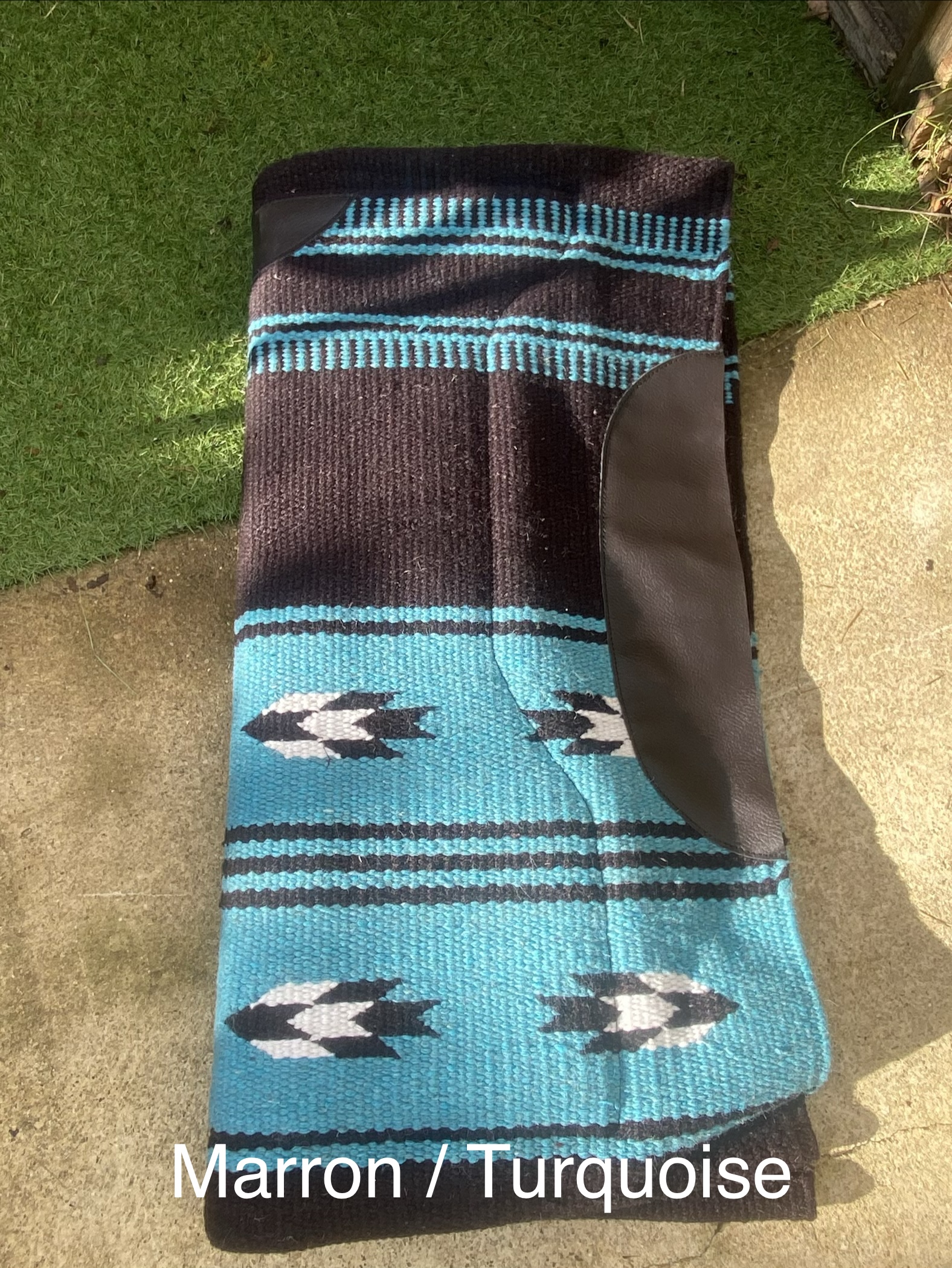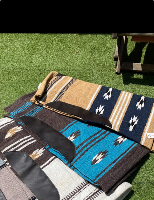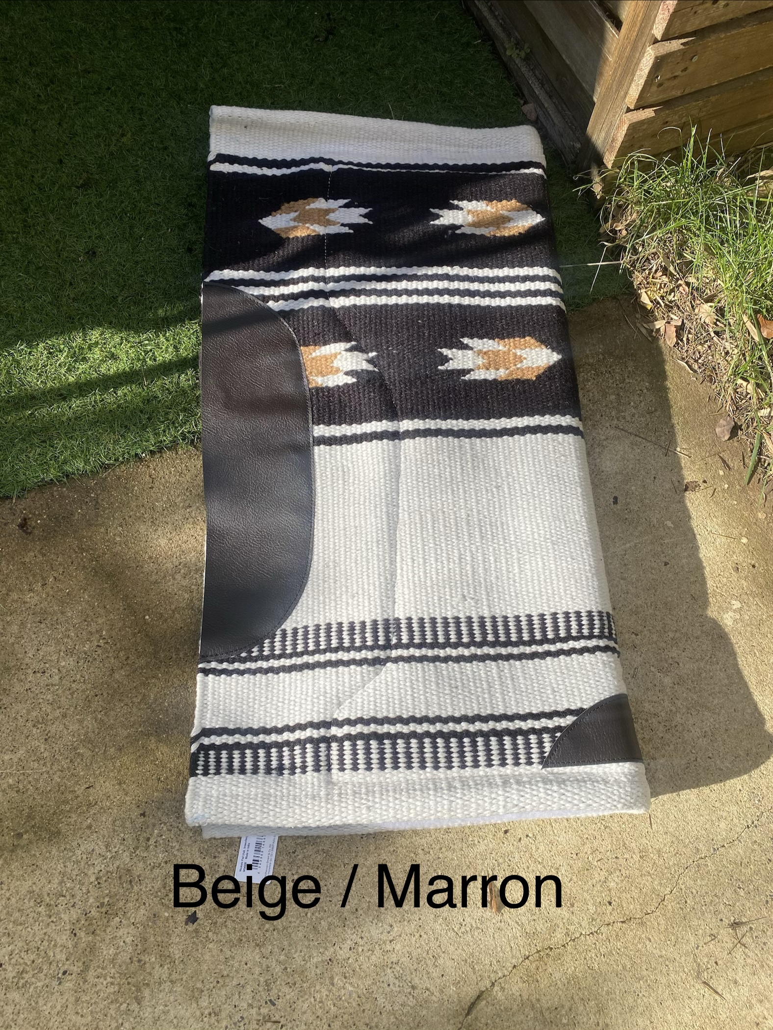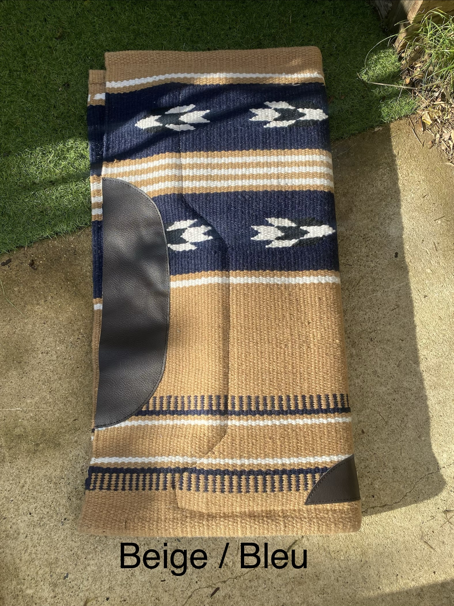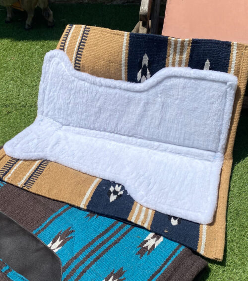 Tapis de bât confortable et robuste, conçu avec un dessus en laine mélangée pour une bonne respirabilité et un dessous en fourrure synthétique offrant douceur et protection contre les frottements.